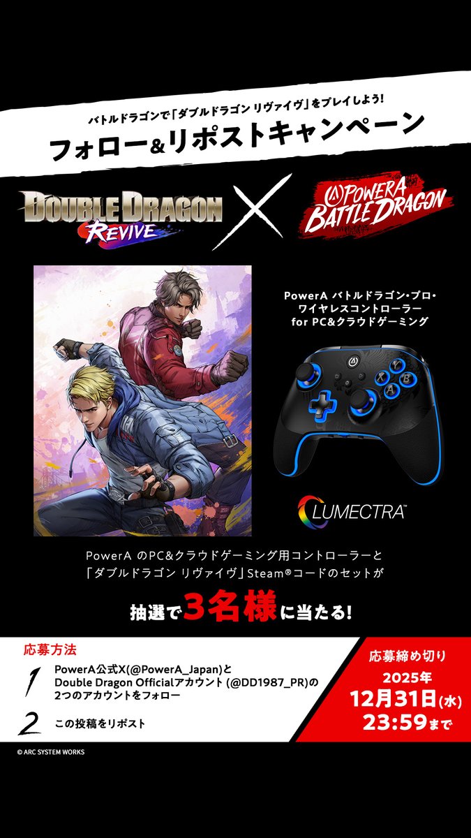 賞品:『ダブルドラゴン リヴァイヴ』Steam®コードとバトルドラゴンシリーズのコントローラー(3名様)