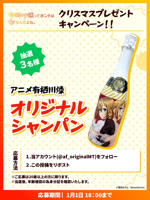 賞品:アニメ有栖川煉 オリジナルシャンパン(3名様)