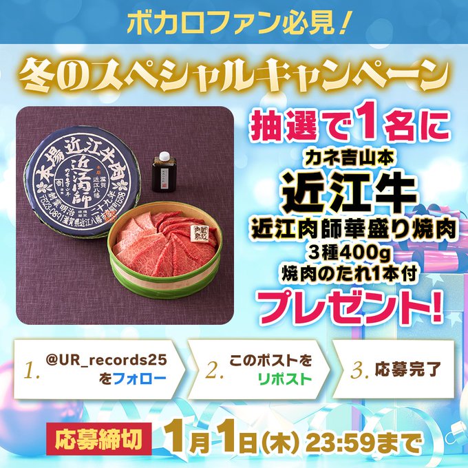 賞品:近江肉師華盛り焼肉3種400g(1名様)