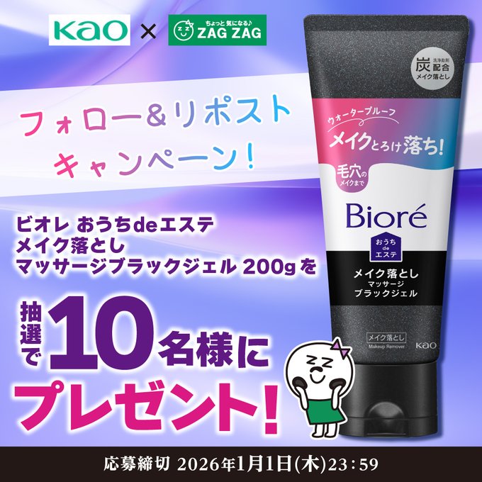 賞品:ビオレ おうちdeエステ メイク落とし マッサージブラックジェル(10名様)