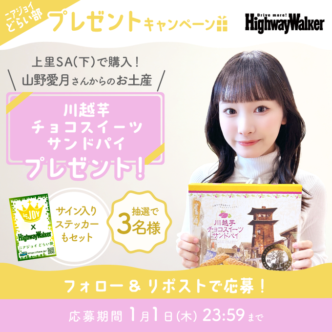 賞品:川越芋チョコスイーツサンドパイ&山野愛月さんサイン入りステッカー(3名様)