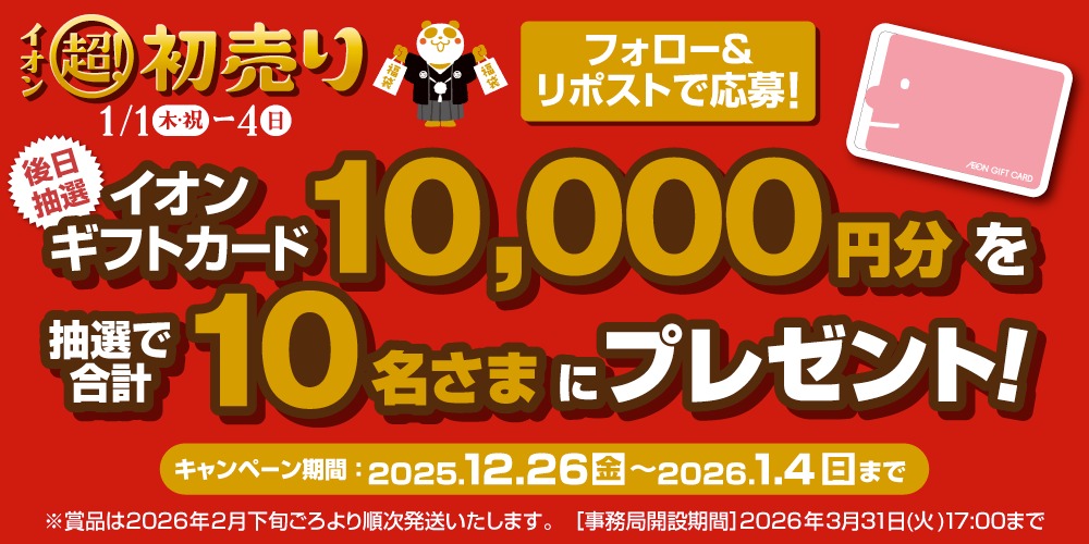 イオン公式X(Twitter)アカウントをフォロー&キャンペーン対象ポストをリポストしてご応募ください。