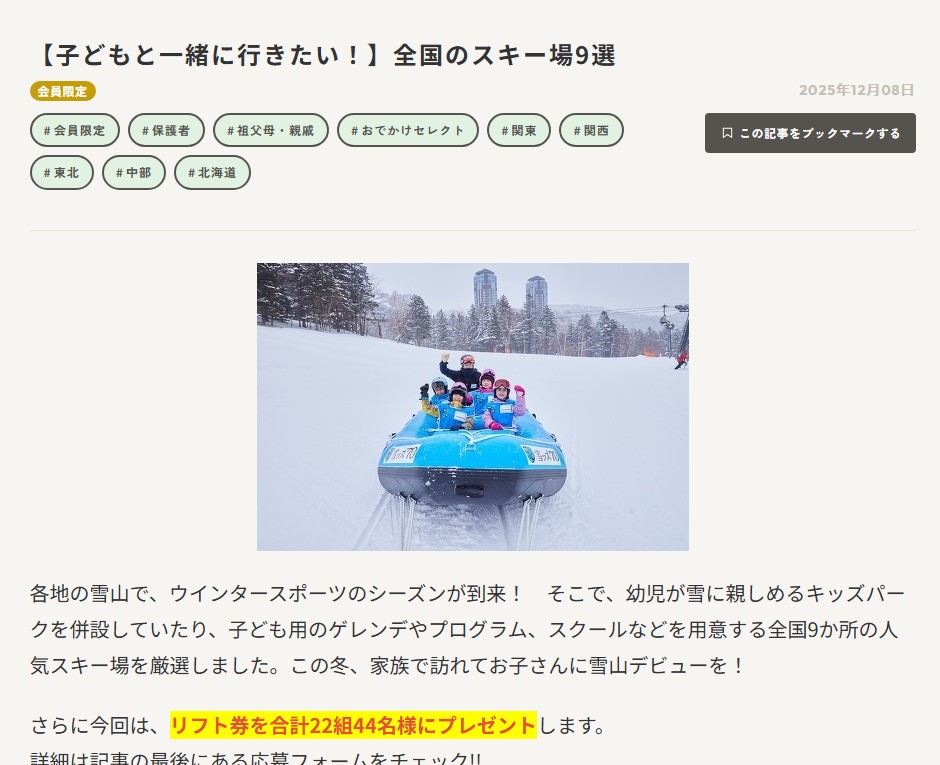 ヨメルバ会員限定で、アンケートに答えていただいた方の中から、抽選でスキー場リフト券をプレゼント!