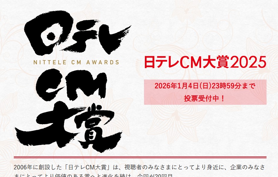 QUOカードPay3,000円分を100名様にプレゼント 2025.12.30日テレCM大賞‐視聴者CM好感度投票 賞品:3000円分のQUOカードPay(100名様) 締切:2026年1月4日(日)抽選で3000円分のQUOカードPayが100名様に当たる!※詳細はキャンペーンページにてご確認ください。応募はこちらから