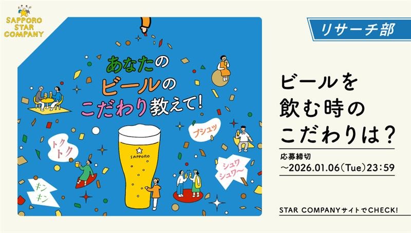 SORACHI 1984×4缶パックを30名様にプレゼント 2025.12.30SAPPORO STAR COMPANY‐ビールを飲む時のこだわりは? 賞品:SORACHI 1984×4缶パック(30名様) 締切:2026年1月6日(火)「あなたならではのビールの飲み方」に関する質問にお答えください※詳細はキャンペーンページにてご確認ください。応募はこちらから