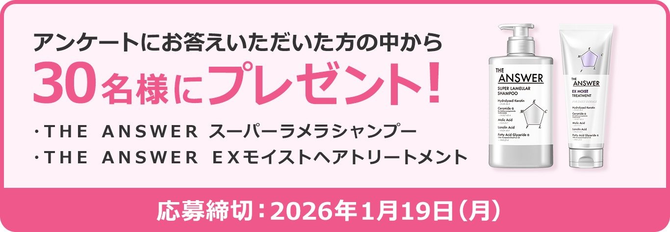 賞品:『ジアンサー スーパーラメラシャンプー(本体400ml)』と『ジアンサー EXモイストヘアトリートメント(本体220g)』(30名様)