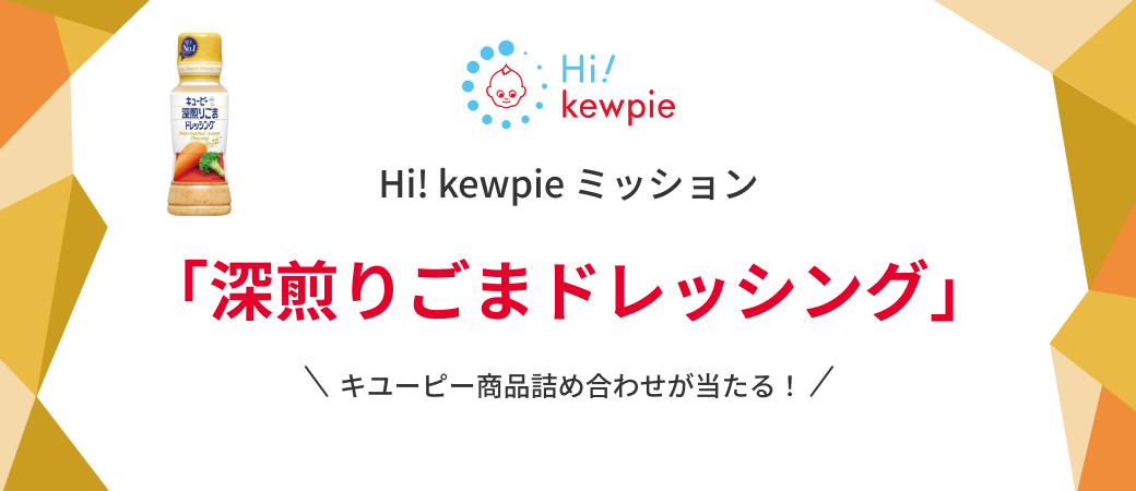 キユーピー商品詰め合わせがその場で当たる! 2025.12.30Hi! kewpie ミッション「深煎りごまドレッシング」 賞品:キユーピー商品詰め合わせ 締切:2026年1月20日(火)9:59ご応募には会員登録/ログインが必要です。※詳細はキャンペーンページにてご確認ください。応募はこちらから