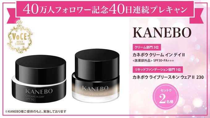 賞品:KANEBO クリーム イン デイⅡ 、ライブリースキン ウェアⅡ 230(2名様)