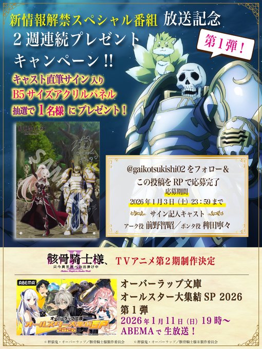 TVアニメ『骸骨騎士様、只今異世界へお出掛け中Ⅱ』‐フォロー&リポストキャンペーン