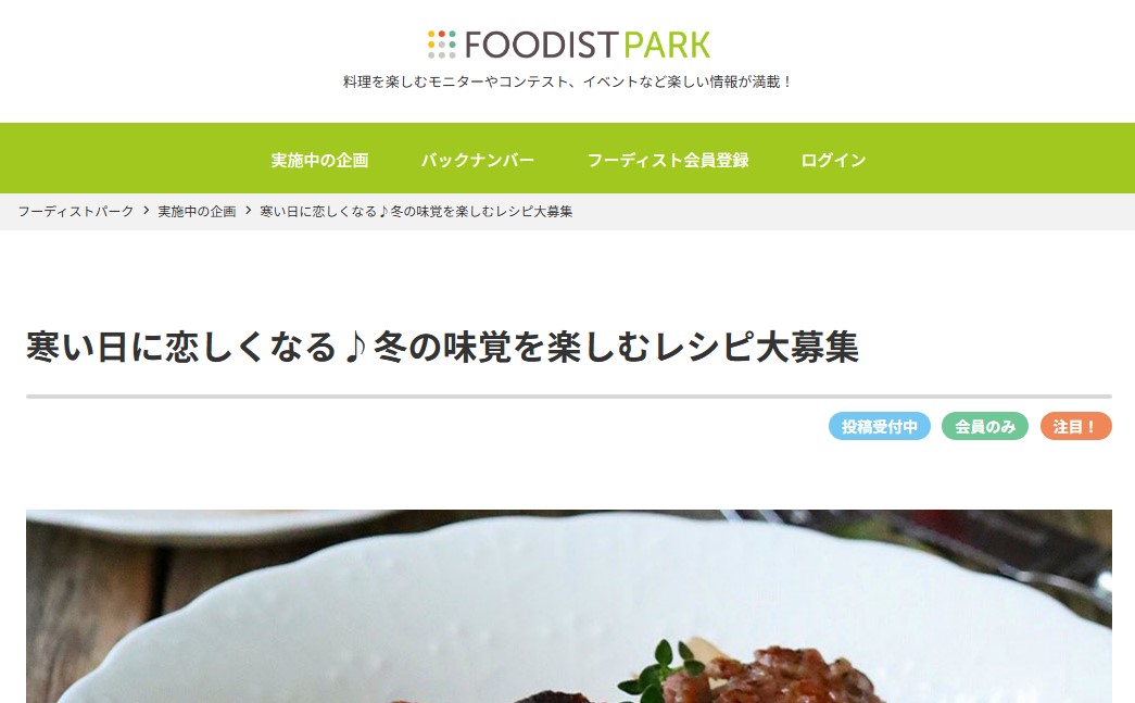 フーディストパーク‐冬の味覚を楽しむレシピ大募集