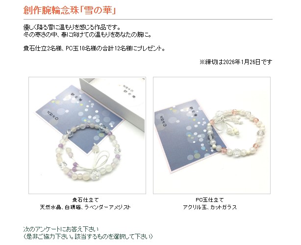 創作腕輪念珠「雪の華」を合計12名様にプレゼント