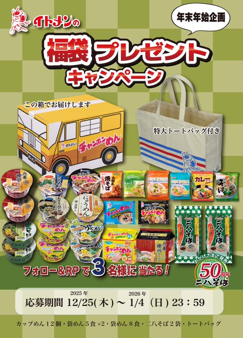 賞品:イトメン即席めん詰合せとグッズ(3名様)