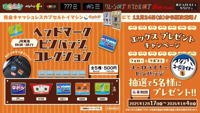 賞品:「ユーロライナー」ピンバッジ(5名様)