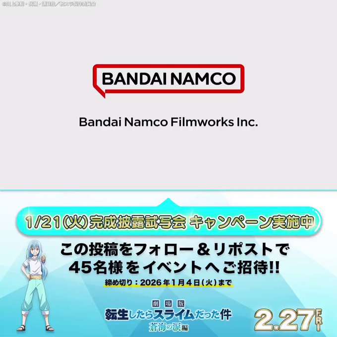賞品:『劇場版 転生したらスライムだった件 蒼海の涙編』ご招待(45名様)