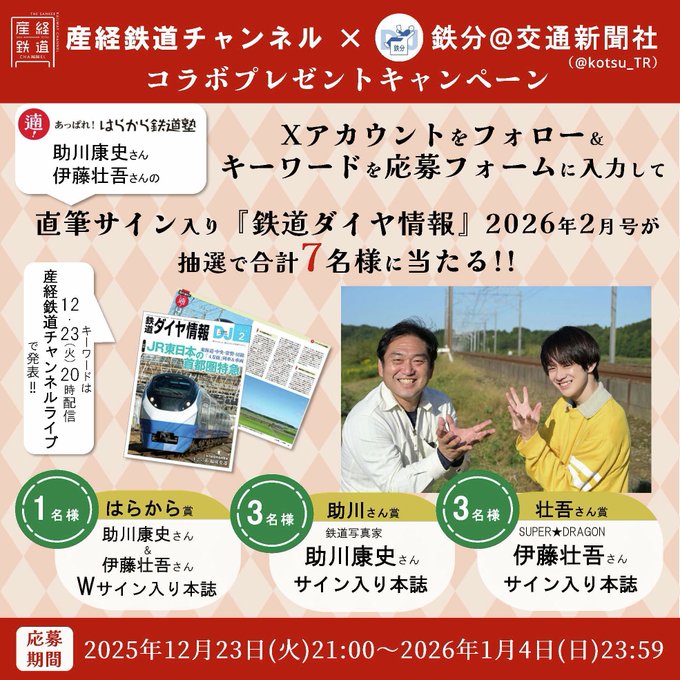 賞品:助川康史&伊藤壮吾 サイン入り『鉄道ダイヤ情報』(7名様)
