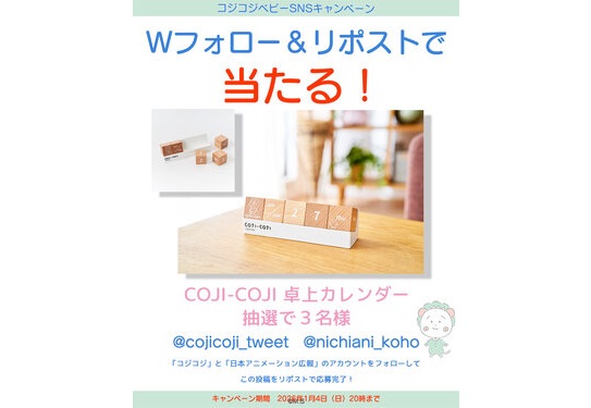 【X・Instagram懸賞】コジコジ卓上カレンダーを6名様にプレゼント 2026.01.02コジコジベビーSNSキャンペーン 賞品:コジコジ卓上カレンダー(6名様) 締切:2026年1月4日(日)コジコジ卓上カレンダーを抽選で3名様にプレゼント!※詳細はキャンペーンページにてご確認ください。応募はこちらから