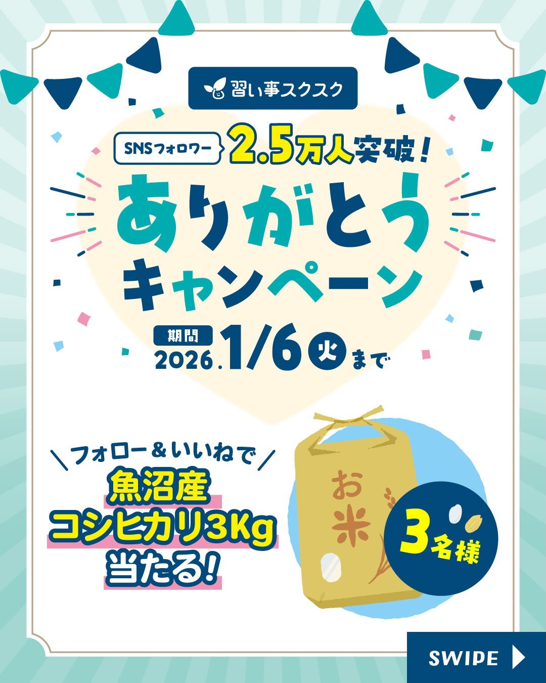 習い事スクスク‐SNSフォロワー2.5万人突破!ありがとうキャンペーン