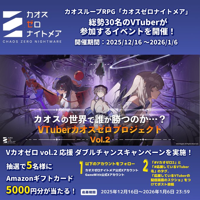 GameWith@最新ゲーム情報局‐VTuberカオゼロvol.2 応援ダブルチャンスキャンペーン