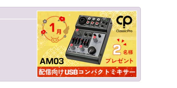 コンパクト3chミキサー CLASSIC PRO AM03を2名様にプレゼント 2026.01.04サウンドハウス 今月のプレゼント 賞品:コンパクト3chミキサー CLASSIC PRO / AM03(2名様) 締切:2026年1月31日(土)ご応募には会員登録/ログインが必要です。※詳細はキャンペーンページにてご確認ください。応募はこちらから