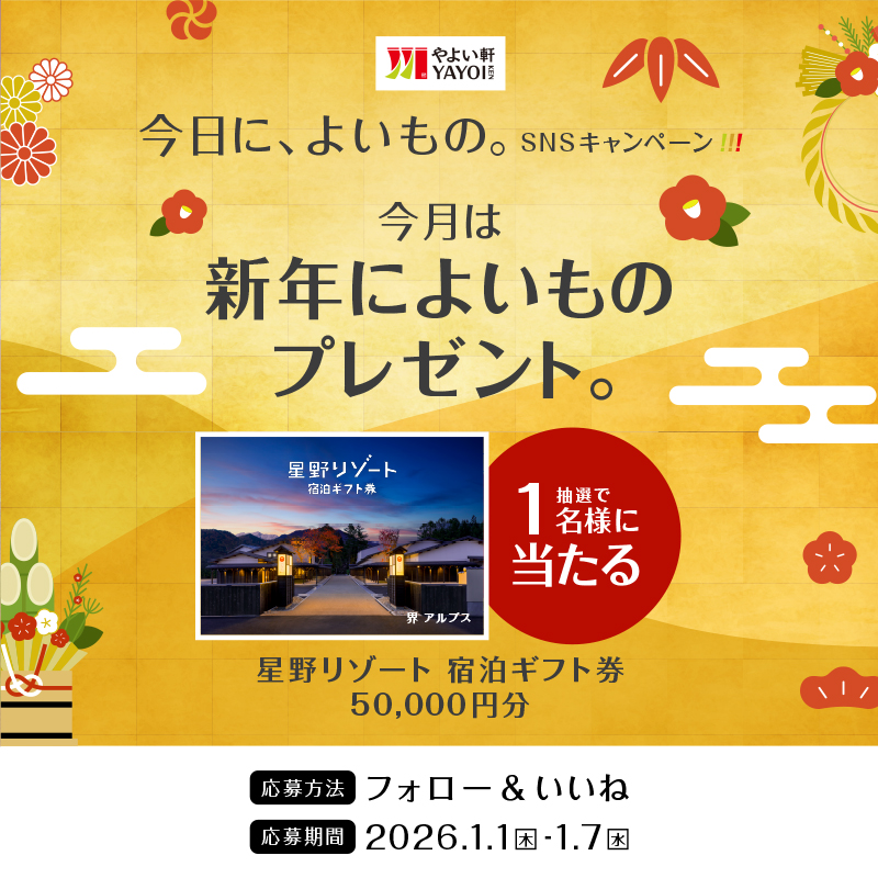 賞品:星野リゾート宿泊ギフト券50,000円分(1名様)