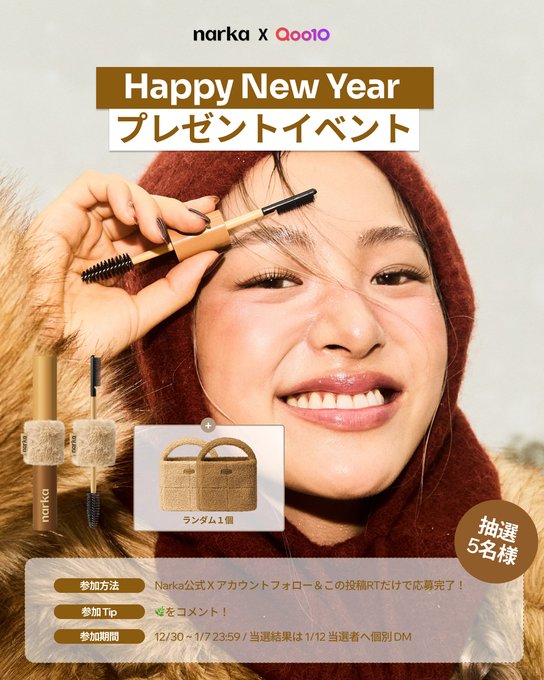 【X懸賞】冬限定2点セットを5名様にプレゼント 2026.01.05narka‐プレゼントキャンペーン 賞品:冬限定2点セット(5名様) 締切:2026年1月7日(水)参加方法 ① アカウントフォロー ② 投稿をRT&いいね!※詳細はキャンペーンページにてご確認ください。応募はこちらから