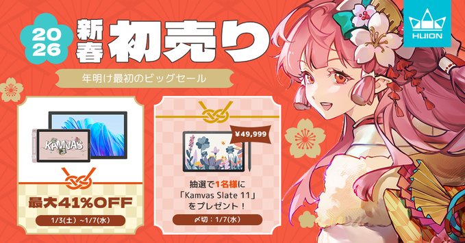 【X懸賞】Huion Kamvas Slate 11を1名様にプレゼント 2026.01.05Huion‐抽選キャンペーン 賞品:Kamvas Slate 11(1名様) 締切:2026年1月7日(水)公式X(Twitter)アカウントをフォロー&キャンペーン対象ポストをリポストしてご応募ください。※詳細はキャンペーンページにてご確認ください。応募はこちらから