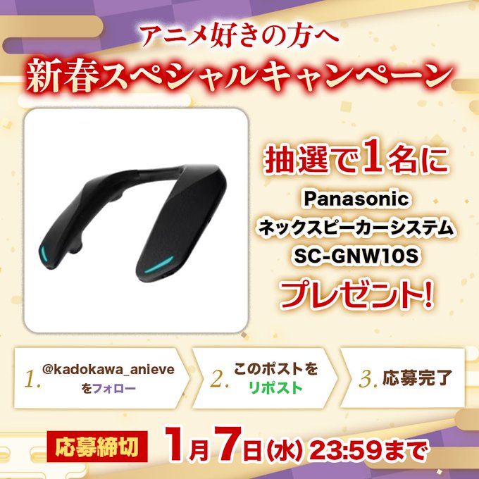 賞品:Panasonic ネックスピーカーシステム SC-GNW10S(1名様)