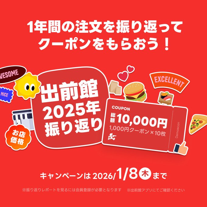 出前館‐1年間の注文を振り返ってクーポンをもらおう