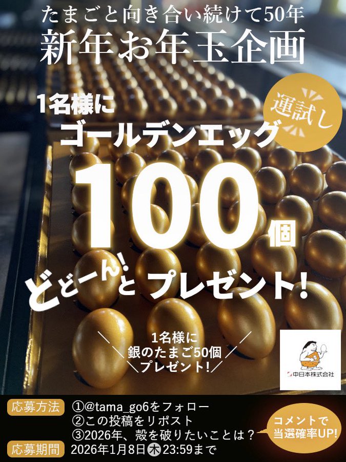 タマゴロウの中日本株式会社(たまごのがっこう)‐フォロー&リポストキャンペーン