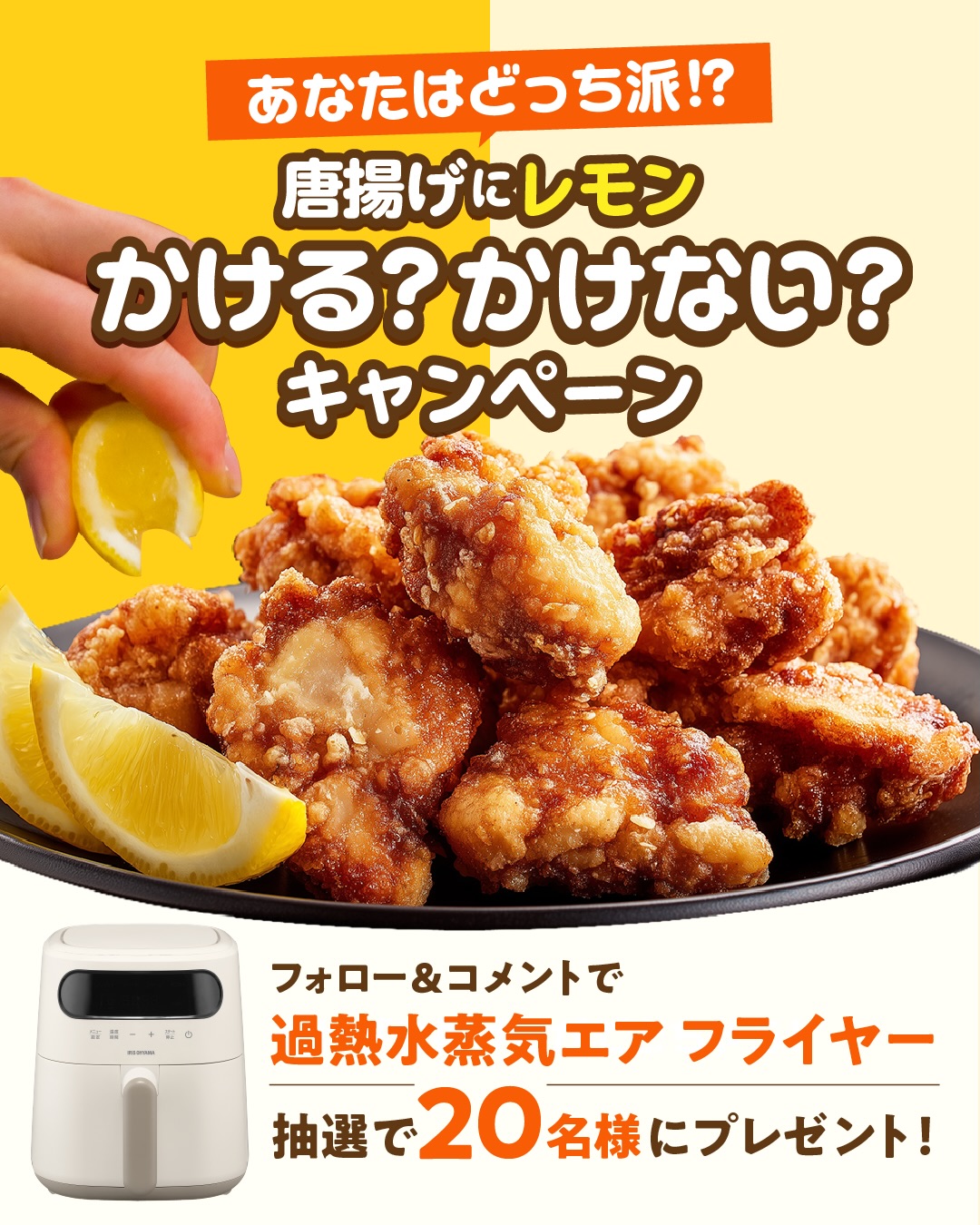 アイリスオーヤマ‐唐揚げにレモンかける派?かけない派?みんなはどっち?キャンペーン