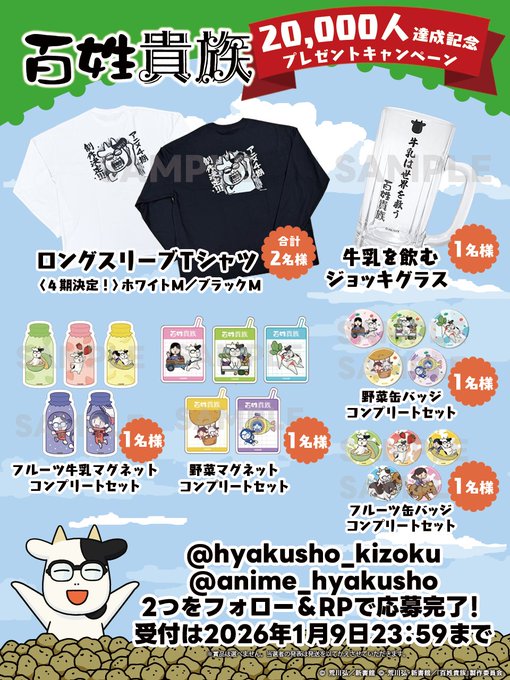 @hyakusho_kizoku @anime_hyakusho をフォロー&キャンペーン対象ポストをリポストしてご応募ください。