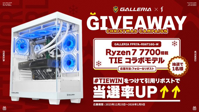 @GALLERIA_GM @dospara_web @TIECLAN_ をフォロー&キャンペーン対象ポストをリポストしてご応募ください。