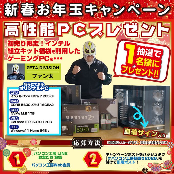 賞品:ZETA DIVISION ファン太 サイン入り インテル組立キット福袋利用の高性能PC(1名様)