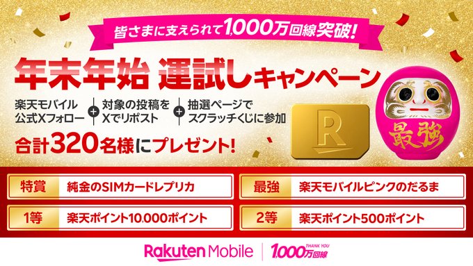 楽天モバイル‐1,000万回線突破!年末年始 運試しキャンペーン