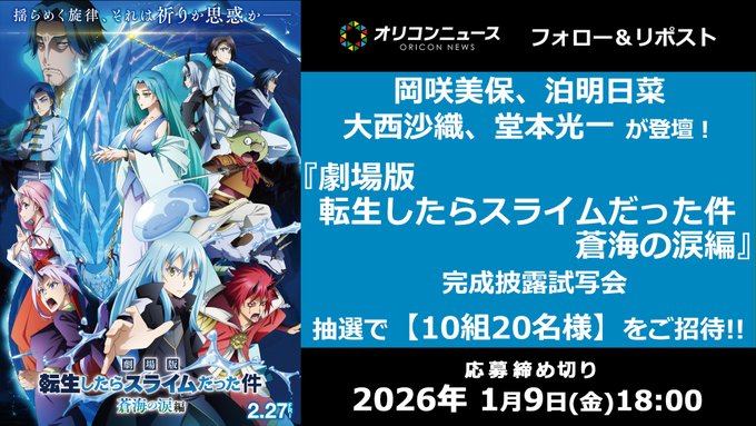賞品:「劇場版 転生したらスライムだった件 蒼海の涙編」完成披露試写会 ご招待(10組20名様)
