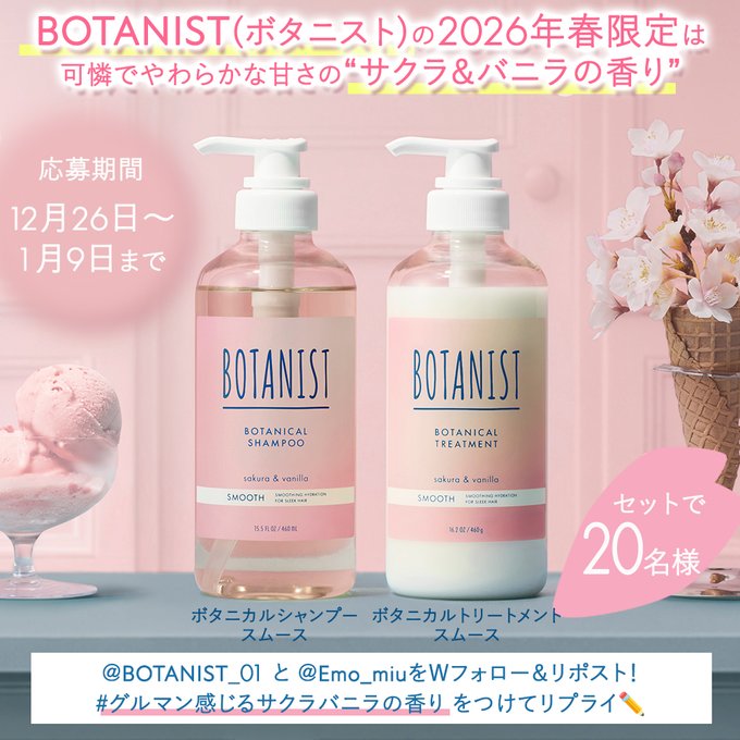 賞品:ボタニカルシャンプー・トリートメント サクラ&バニラの香り(スムース)(20名様)