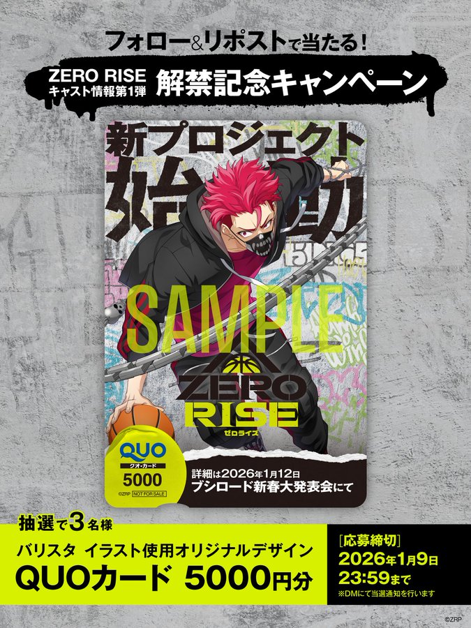 賞品:ゼロライズ オリジナル QUOカード5000円分 (バリスタver.)(3名様)