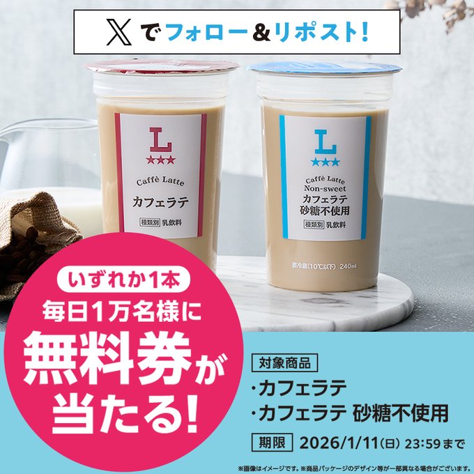 賞品:「対象のローソンオリジナルチルド飲料カフェラテ」無料券(50,000名様)