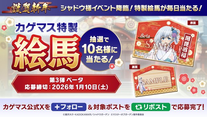 賞品:カゲマス特製絵馬(ベータ)(10名様)