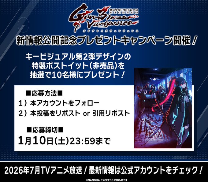 賞品:TVアニメ「なのはガンブレ」キービジュアル第2弾デザインの特製ポストイット(10名様)
