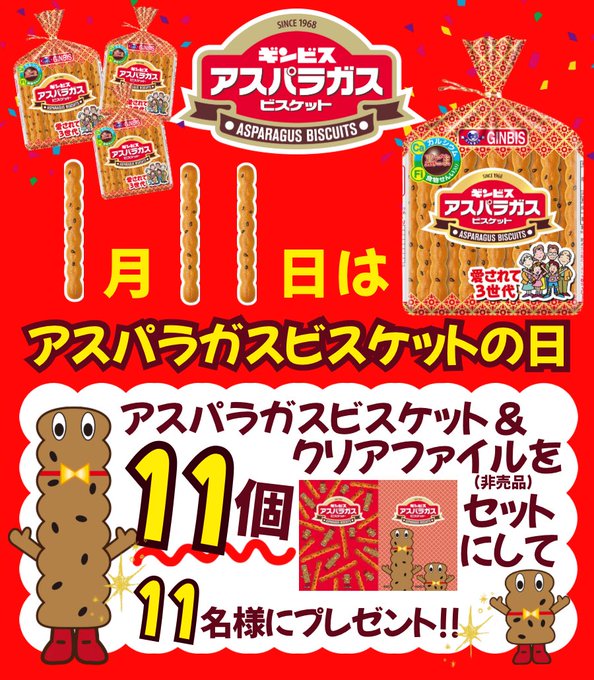賞品:アスパラガスビスケット11個とクリアファイル(非売品)(11名様)