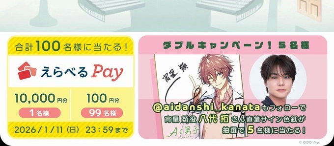 AI男子 カナタ公式アカウント開設記念 えらべるPay抽選キャンペーン