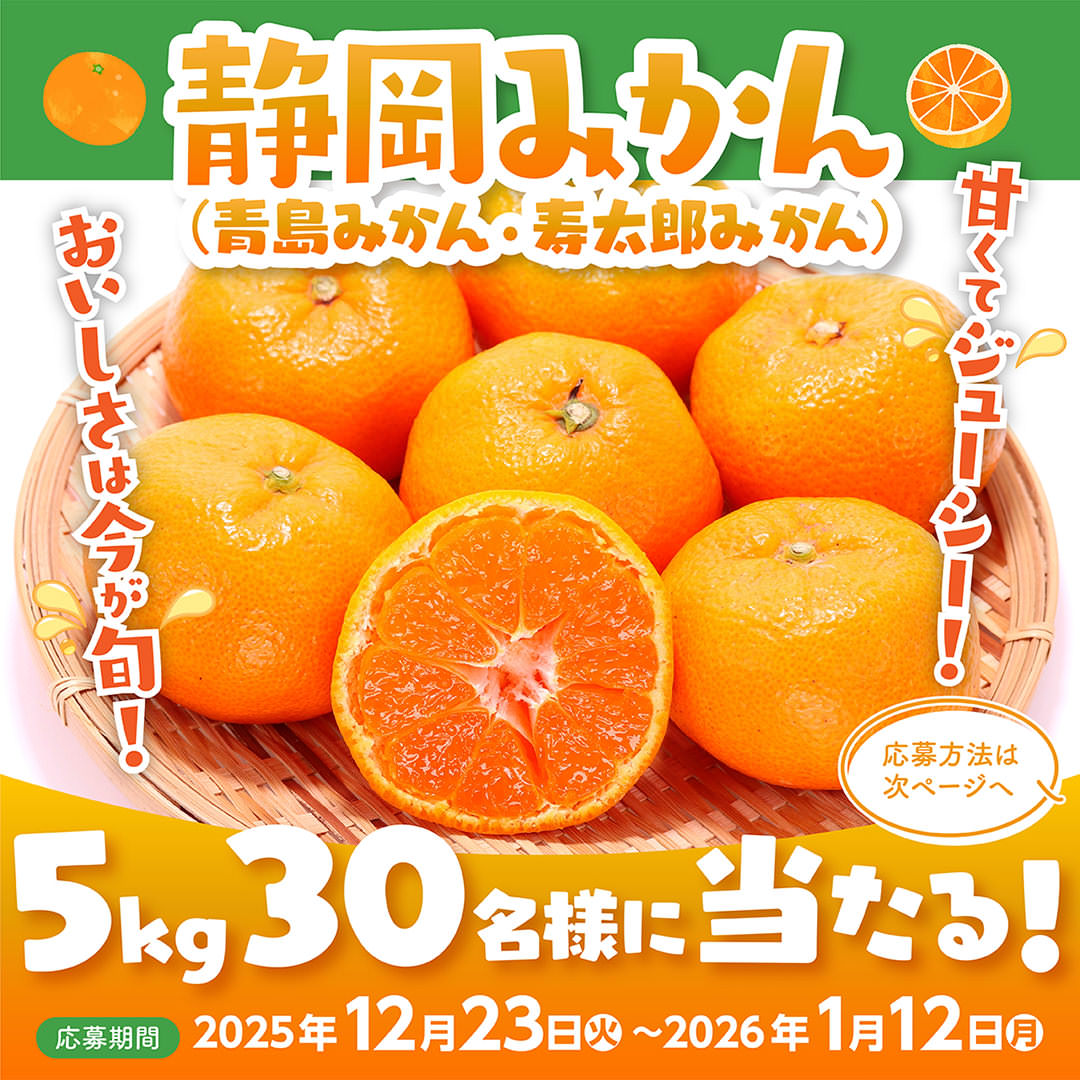 賞品:静岡みかん(青島みかんもしくは寿太郎みかん)5kg(30名様)