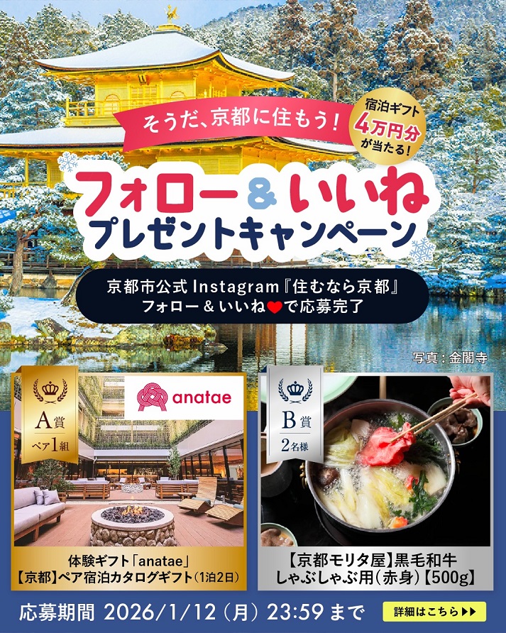 住むなら京都(京都市移住サポートセンター)‐フォロー&いいねキャンペーン