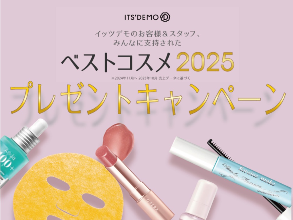 【X懸賞】コスメセットを4名様にプレゼント 2026.01.09ITS’DEMO‐フォロー&リポストキャンペーン 賞品:コスメセット(4名様) 締切:2026年1月12日(月)公式X(Twitter)アカウントをフォロー&キャンペーン対象ポストをリポストしてご応募ください。※詳細はキャンペーンページにてご確認ください。応募はこちらから
