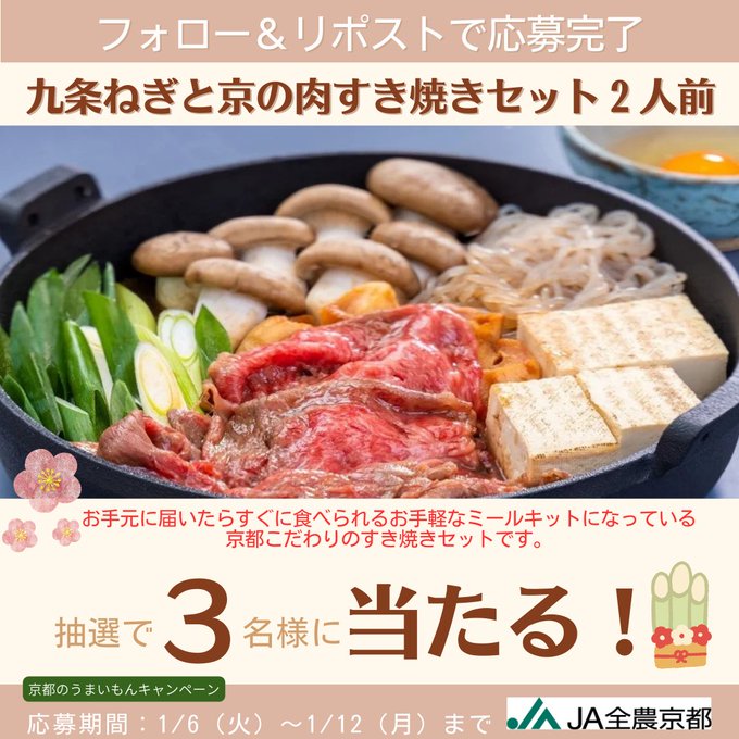 賞品:九条ねぎと京の肉すき焼きセット2人前(3名様)