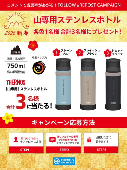 賞品:サーモスの山専用ステンレスボトル(3名様)