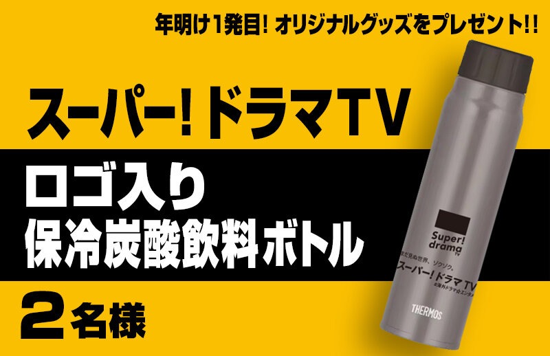 スーパー!ドラマTVロゴ入り保冷炭酸飲料ボトルを2名様にプレゼント 2026.01.09スーパー!ドラマTV‐プレゼントキャンペーン 賞品:スーパー!ドラマTVロゴ入り保冷炭酸飲料ボトル(2名様) 締切:2026年1月30日(金)17:00アンケートに答えてご応募ください。※詳細はキャンペーンページにてご確認ください。応募はこちらから