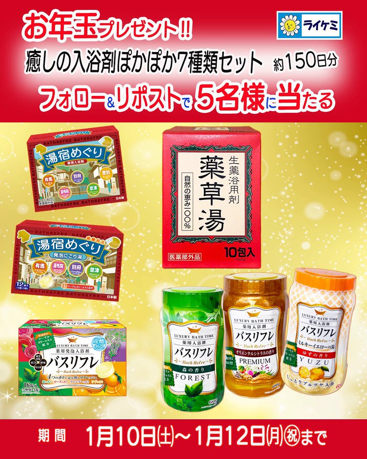 賞品:癒しの入浴剤ぽかぽかセット 約150日分(5名様)