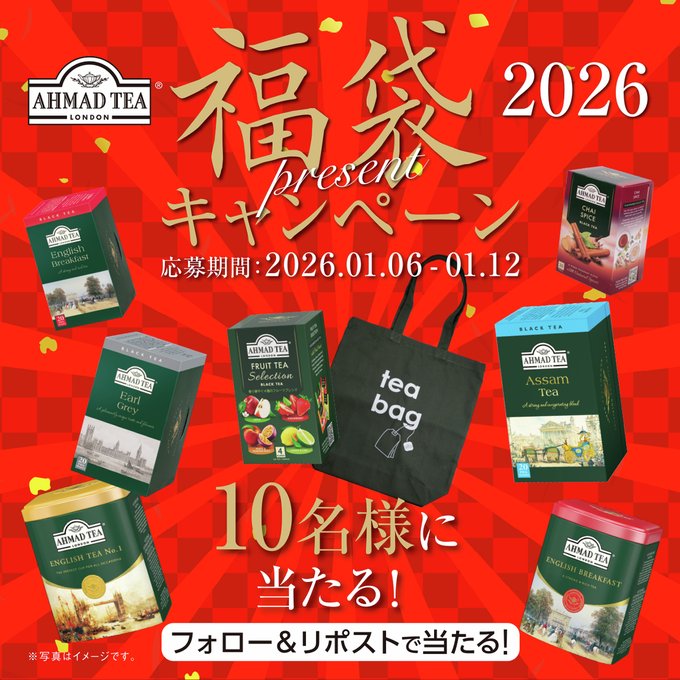 【X・Instagram懸賞】アーマッドティーの特別詰め合わせセットを10名様にプレゼント 2026.01.11アーマッドティー公式SNSアカウント福袋キャンペーン 賞品:アーマッドティーの特別詰め合わせセット(10名様) 締切:2026年1月12日(月)新年を記念してアーマッドティーの特別詰め合わせセットを10名様にプレゼント※詳細はキャンペーンページにてご確認ください。応募はこちらから